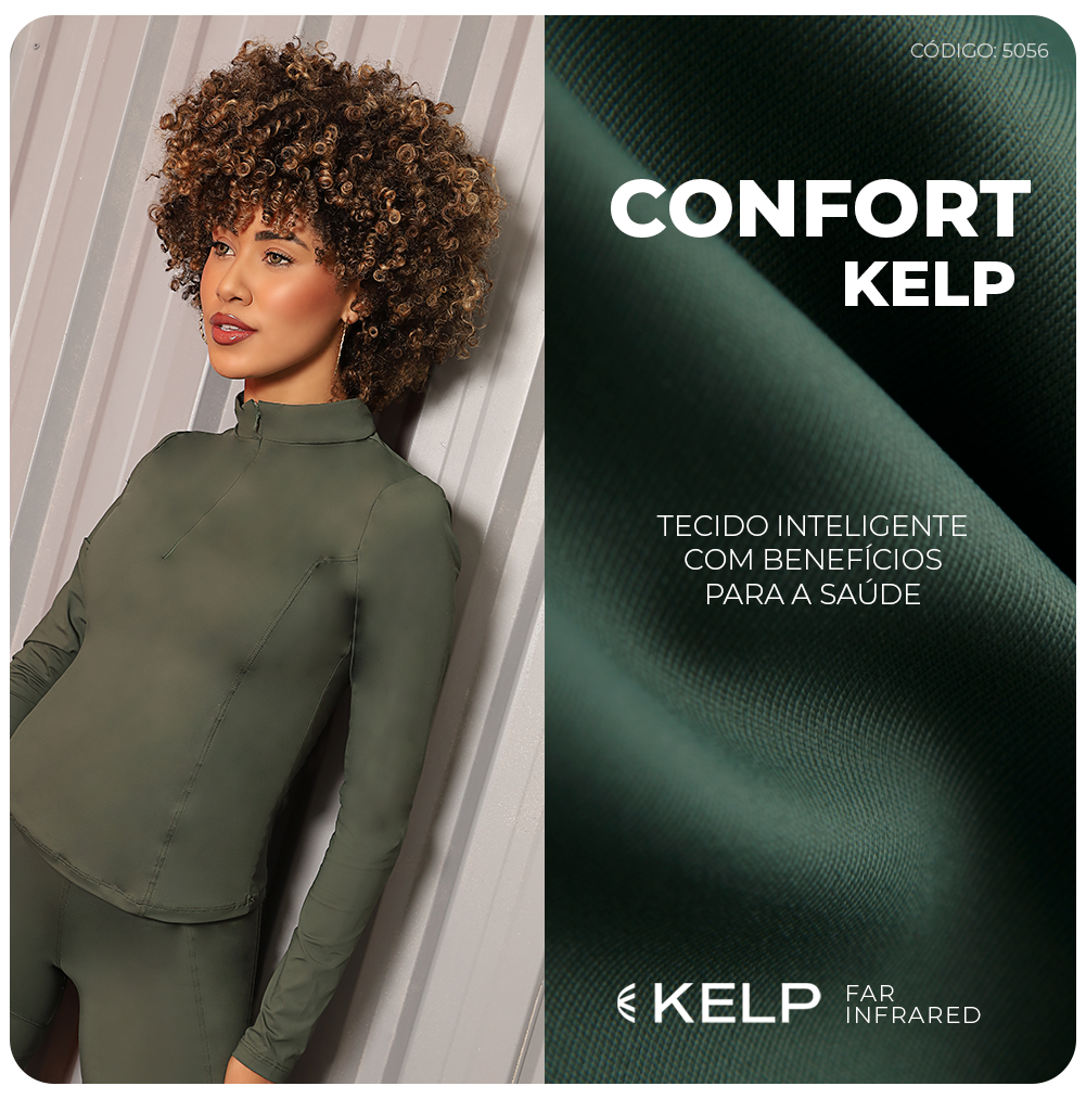 A Tecnologia Kelp consiste em um fio têxtil inteligente com cristais bioativos. Quando em contato com o calor do corpo, esses cristais emitem e refletem ondas de infravermelho longos, estimulando as moléculas de água presentes no organismo. Esse processo gera benefícios imediatos para a saúde, a recuperação muscular e o desempenho físico.